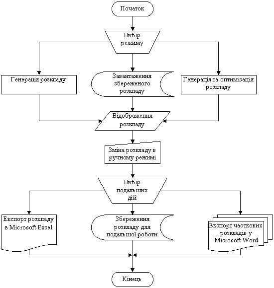 розкладу на основі вхідних даних генерує певний розклад з дотриманням усіх