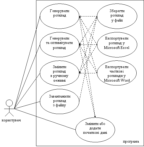 часткових розкладів на кафедрах; створення певної кількості користувачів та надання