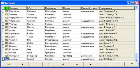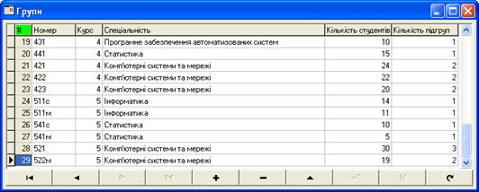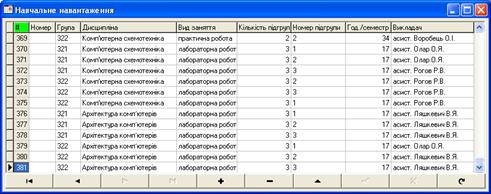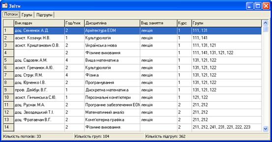 навантаження списки занять для потоків, груп і підгруп (рис.7.3), що є
