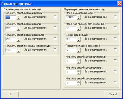 і відбувається генерація розкладу. Зовнішній вид основної форми програми