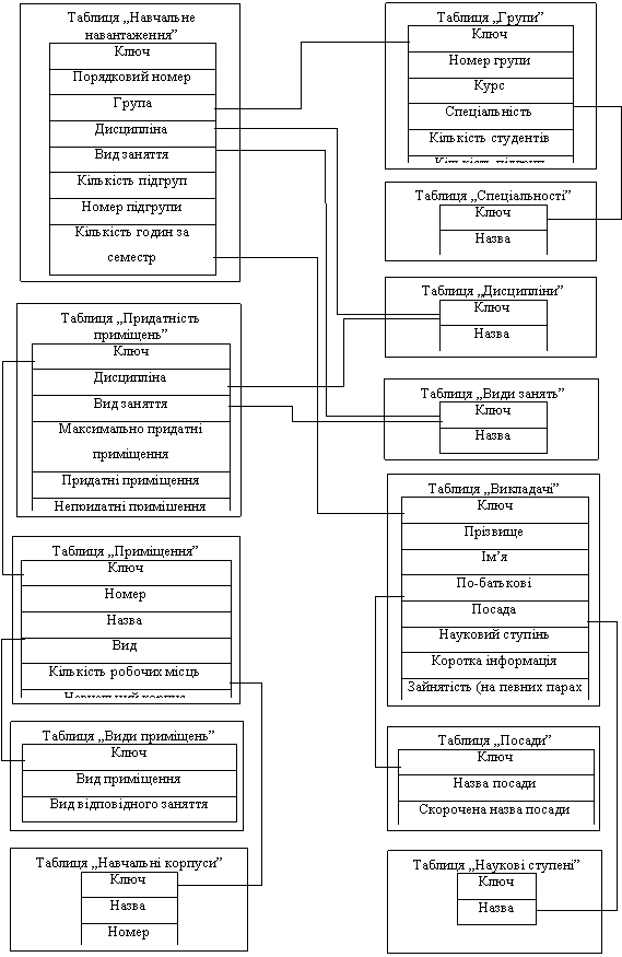 інформація в базі даних та параметри розкладу пов’язані з інформацією файлів