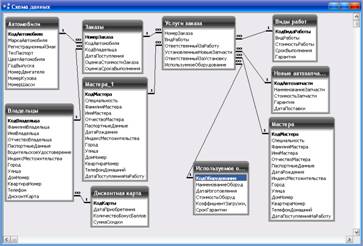 таблицы, описывающие структуру автосервиса. Здесь будет содержаться