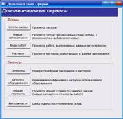 сервисы» содержит кнопки для активации соответствующих запросов и форм. Так же
