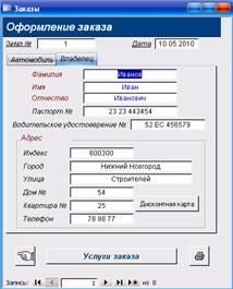 заказ (ФИО, адрес, номер паспорта и т.д.);