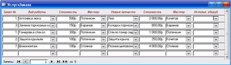 таблицы, описывающие заказы автосервиса. Сюда будет включаться