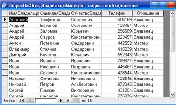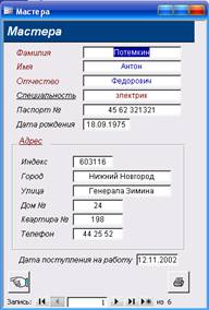 наглядным примером этого типа связи служит отношение между таблицами «Мастера»