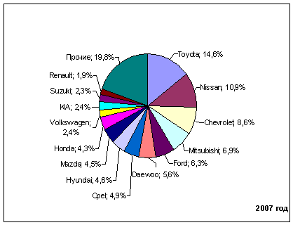 машин. За 11 месяцев 2007г. сегмент рынка новых тяжелых иномарок вырос почти в