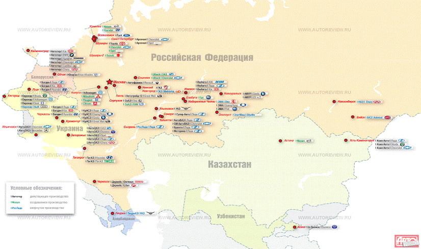 Производство иностранных автомобилей в России в 2007 - 2010 году