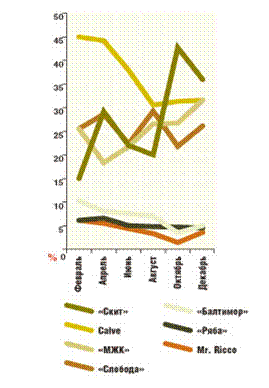 вырвалась в лидеры; однако к декабрю позиции бренда "Скит" вновь