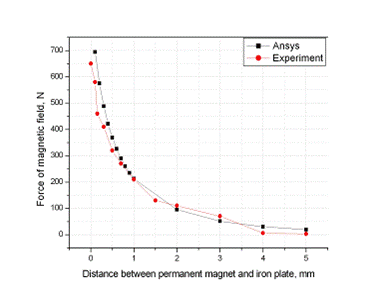 измерений силы магнитного поля на один из магнитов в зависимости от величины