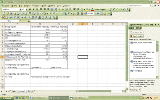 розрахунки при визначенні ймовірності банкрутства виконані.