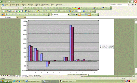 Рис. 3.15. Діаграма активи на початок і на кінець