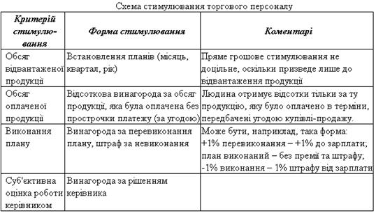 схема критеріїв стимулювання торгового персоналу (табл.3.1).
