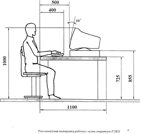 Рекомендуемая планировка рабочего места оператора ПЭВМ,