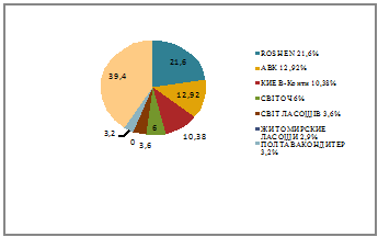 «Крафт Фудз Украина», и продукцией отечественных гигантов Roshen, «АВК», «КОНТИ»,
