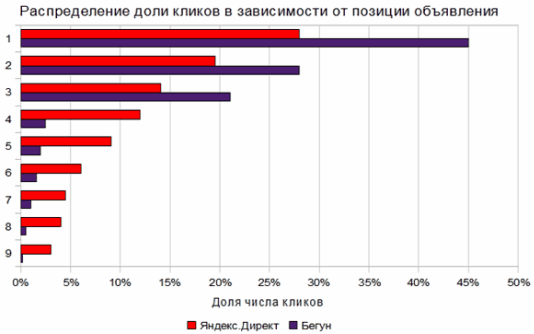рекламних оголошень в Google у цілому нижче, ніж в інших систем, а розташування