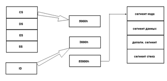 содержимому сегментного регистра и смещения.