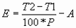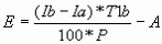 E = ((Ib-Ia)*T1b/100*P) - A (13)