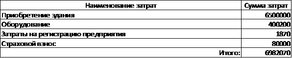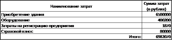 оборудования, затраты на регистрацию предприятия, они составят 6902070 рублей.