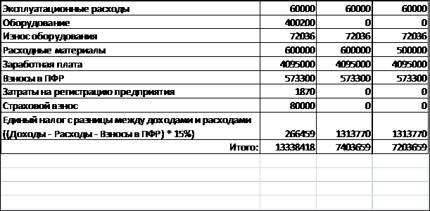 переменным затратам нашего комплекса отнесем: расходные материалы, коммунальные платежи и эксплуатационные расходы. Они