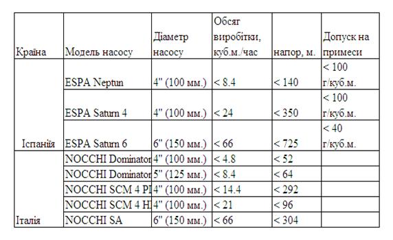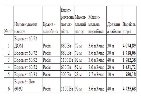 конкуруючих видів побутових електронасосів для артезіанських колодязів