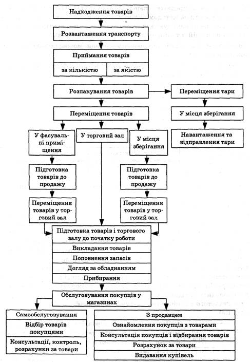 та послідовність операцій, які виконуються в роздрібній торговельній мережі,