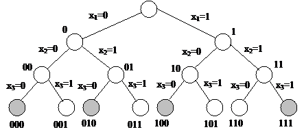 перебору (вершини – значення змінних, дуги – рішення), зафарбовані вершини