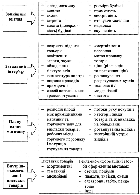 населеному пункті, та внутрішні елементи, характерні для окремого торгового