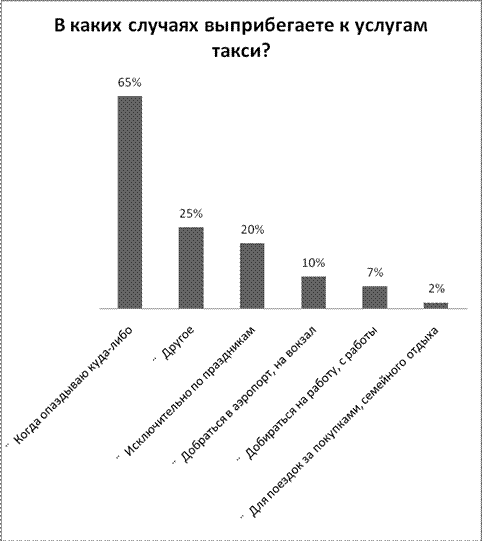 69% клиентов пользуются такси в случаях, если куда-то опаздывают, самыми