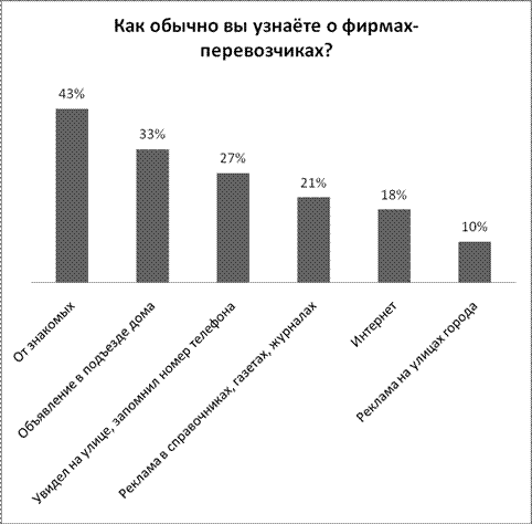 респондентов (43%) узнают о фирмах-перевозчиках от знакомых, а значит