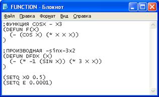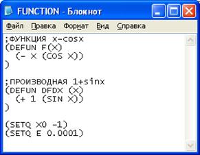 работы является Лисп – реализация нахождения корней уравнения методом Ньютона.
