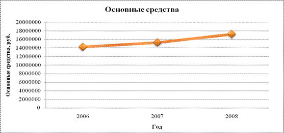 году до 17202422 тысяч рублей в 2008 году. Динамика изменения основных средств