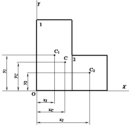 простых сечения – прямоугольник 1 с центром тяжести С1