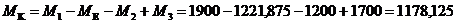 МЕ = 1900 – 1200 + 1700 – 1178,125 = 1221,875 Нм