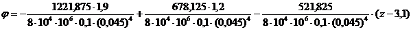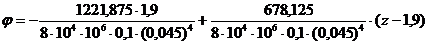 при z = а = 1,9 м φ = – 0,071 рад;