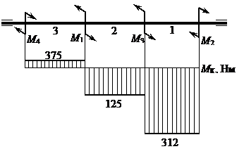 1625 + 3125 – 1875 = 375 Нм.