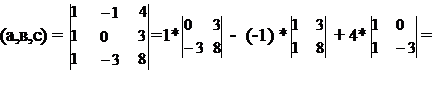 (-1)*(1*8 - 1*3)+4(1*(-3) - 1*0)=9 + 5 - 12=2
