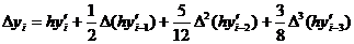 шагом вычислять по формуле Адамса, пополняя по мере необходимости таблицу разностей (6).