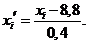 x = x´h + C = 0,3723∙0,4 + 8,8 = 8,9489; D(x) = D(x´)∙h² = 2,3067∙0,4² = 0,3961;