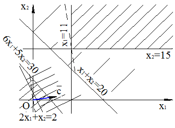 допустимих рішень визначається як загальна частина напівплощин, відповідних