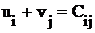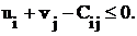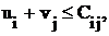 сума потенціалів менша вартості перевезень, що знаходиться у відповідній