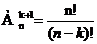 Аkn = n(n-1)(n-2)...(n-(k-1)). (1)