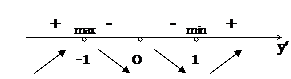 экстремумы: максимум – в точке х=-1, минимум – в точке х=1.