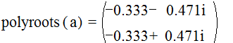 встроенная функция polyroots(a). Аргументом функции является вектор