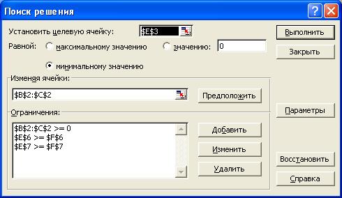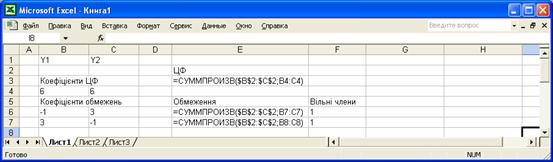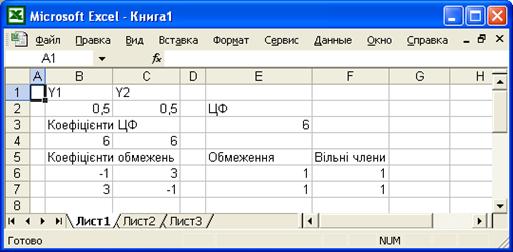 робочий лист з математичною моделлю задачі, який наведено на малюнку: