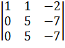 вычтем из неё вторую, умножим первую строку на 5 и вычтем из неё третью:
