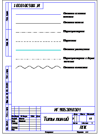 100 мм каждого типа линий. Около каждого отрезка напишите название типа линии