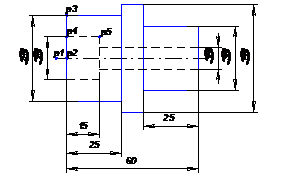 проведенной через точку р2, на расстоянии 25 и 35мм по