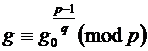 Выбирается произвольное целое число g, являющееся первообразным корнем по модулю p.