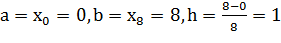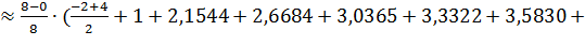 формуле трапеций, разбивая отрезок интегрирования на 8 равных частей и
